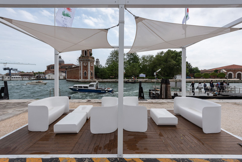 Modular gazebo structure suitable for indoor and outdoor environments, characterized by white painted metal elements and equipped with a wide range of components to adapt to the most varied needs