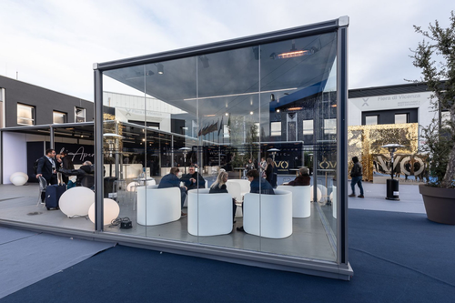 Modular gazebo structure suitable for indoor and outdoor environments, characterized by white or grey painted metal elements and equipped with a wide range of components to adapt to the most varied needs